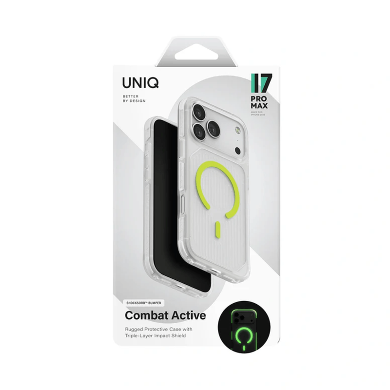 Combat Active fusiona resistencia y estilo con un diseño lineal que ofrece máxima protección sin renunciar a la estética. Compatible con MagSafe, mantiene tu dispositivo siempre listo para la acción. Su superficie texturizada mejora el agarre, mientras que el cordón reflectante añade funcionalidad y visibilidad en movimiento. Y para que nunca pases desapercibido, su exclusivo diseño que brilla en la oscuridad te acompaña con personalidad incluso en condiciones de poca luz. Ideal para un estilo de vida activo y audaz.