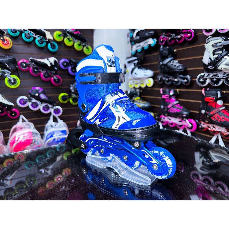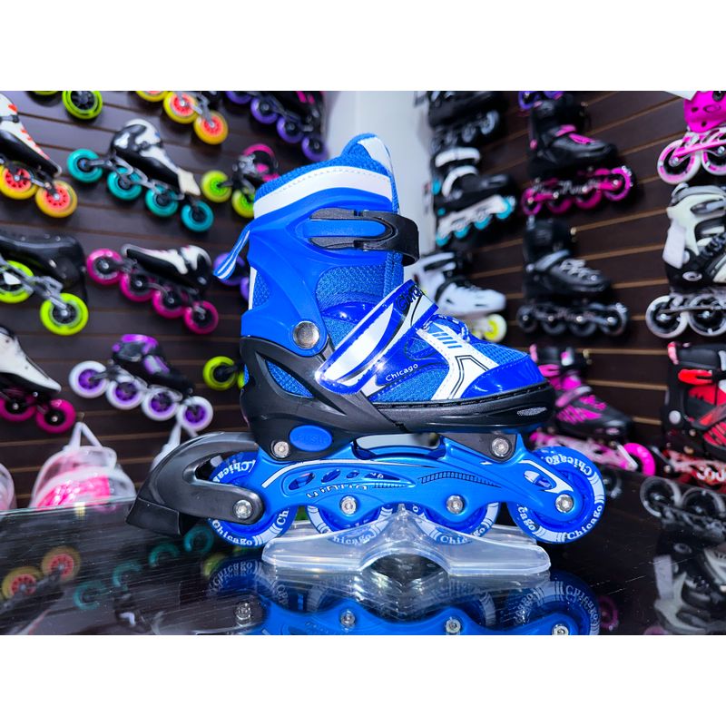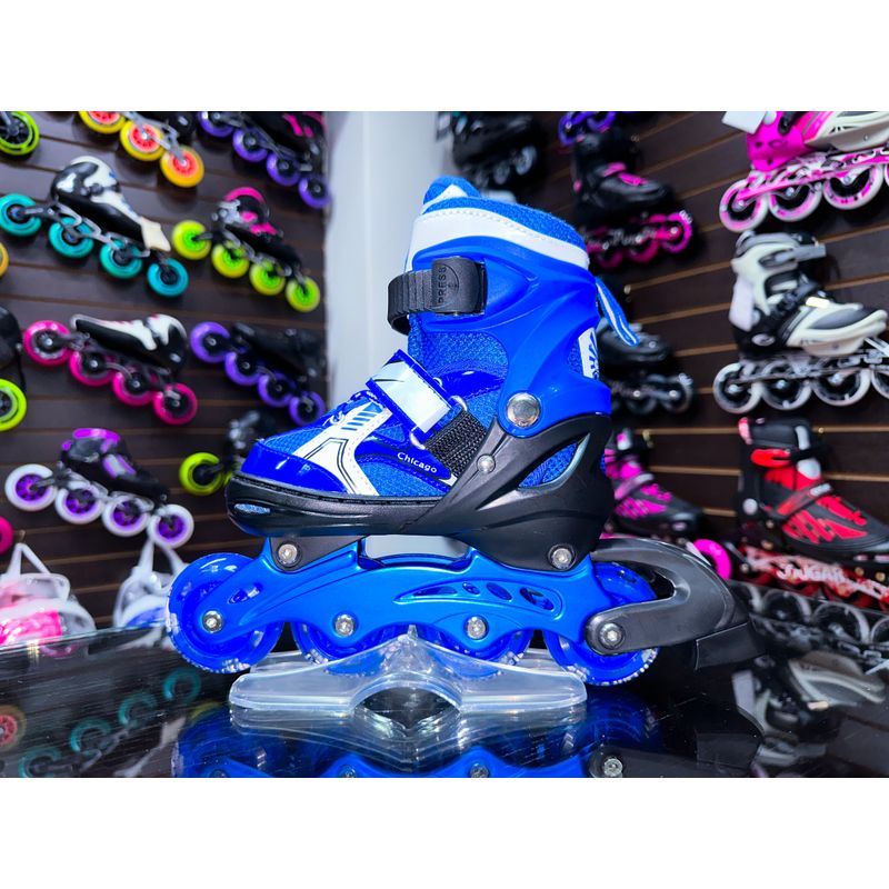Patines En Linea Semiprofesionales Kit Chicago Ajustables Con Protecciones Azul