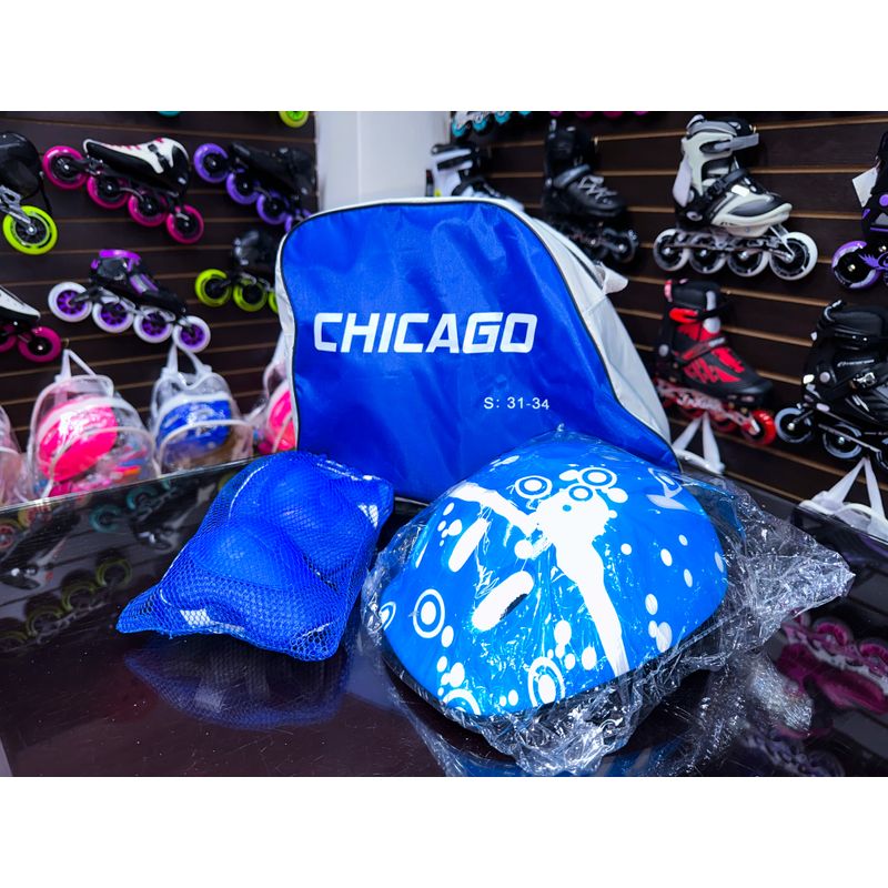 DEPORTESOtros deportesPatinajePatines En Linea Semiprofesionales Kit Chicago Ajustables Con Protecciones Azul