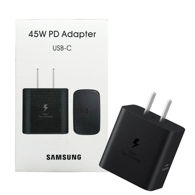 Lleva tu carga al siguiente nivel con el adaptador original Samsung de 45W. Ideal para quienes exigen velocidad, eficiencia y seguridad en cada carga.
