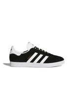 La zapatilla gazelle comenzó su vida como una zapatilla de fútbol y se convirtió en un elemento básico icónico de la ropa de calle. este par rinde homenaje a la versión favorita de 1991, con los mismos materiales, colores y proporciones ligeramente más anchas. la parte superior de nobuk le da a estos zapatos un tacto suave.