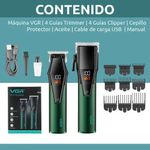 2x Maquina Vgr 1x Cable de carga 1x Cepillo de limpieza 8x Peines guía 1x Aceite 1x bolsa