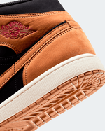 El AIR JORDAN 1 MID SE "Black Flax" es una edición especial (Special Edition) del Air Jordan 1 Mid que se distingue por su estética utilitaria y de temporada, utilizando una paleta de colores típicamente asociada con el otoño y el invierno. Este modelo está construido con una mezcla de materiales que priorizan la durabilidad y un look robusto