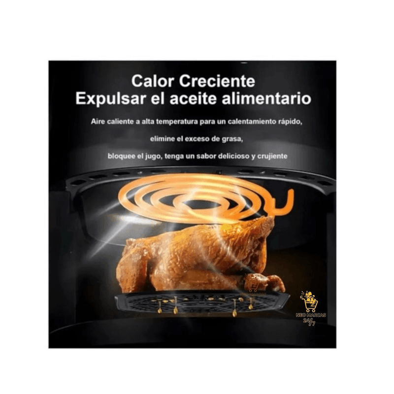 Freidora De Aire 12 Litros Sin Aceite Extra Grande Air Fryer + Moldes De Silicona Prepare una variedad de platos en esta freidora con poco o nada de aceite. La tecnología de freído de aire hace circular aire caliente de manera uniforme alrededor de los alimentos, lo que resulta en una cocción uniforme con el mismo sabor crujiente. Perfecto para preparar carnes, empanadas, pinchos, chicharron, chorizo, pasteles, tortas, aros de cebolla, papas fritas, bistec, pollo y mucho más. Debido a que la fritura con aire no usa aceite, hay menos olor, menos salpicaduras y menos desorden en comparación con las freidoras tradicionales. El control de temperatura ajustable y el temporizador simplifican la operación. La canasta extraíble contiene hasta 10 Litros de comida y está recubierta con una capa antiadherente para facilitar la limpieza. Características del producto: • El sistema de circulación de aire caliente le brinda una alternativa libre de aceite y más saludable para disfrutar de la comida frita • Freír, hornear, asar a la parrilla y asar deliciosas comidas con un control de temperatura incorporado (60-200) y un temporizador de apagado automático con hasta 30 minutos de tiempo de cocción • La freidora cuenta con una fácil transferencia y la preparación de las comidas con la canasta de cocina desmontable • Mango ergonómico • El precalentamiento rápido y el tiempo de cocción sirven comidas con mucho sabor sin grasas y aceites no saludables • Área de cocción limpia y sin desorden sin olor fuerte y aceitoso • Especificaciones del producto: • Color Surtido • Capacidad: 12 LITROS • Voltaje: 110V * No requiere uso de aceites * Control de Temperatura * Control de Tiempo * Diseño Elegante * Incluye Manua