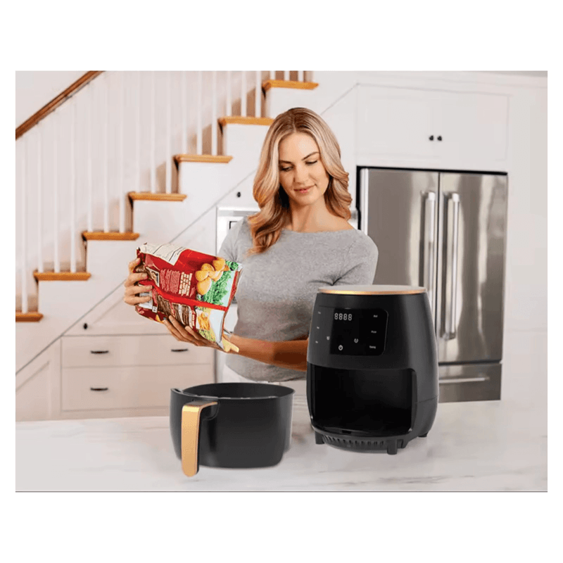 Airfryer Freidora De Aire Multifuncional Home Digital Sin Aceite 7 Litros + Moldes De Silicona La freidora de aire ONN HOME es la solución ideal para quienes buscan una cocina más saludable y eficiente. Con una capacidad de 7.0 L, permite preparar una variedad de platillos, desde papas fritas hasta deliciosas carnes, utilizando menos aceite y conservando el sabor y la textura que tanto disfrutas. Su diseño digital y pantalla táctil facilitan el control de la temperatura y el tiempo de cocción, asegurando resultados perfectos en cada uso. Este modelo cuenta con múltiples funciones: freír, hornear, asar y tostar, lo que la convierte en un electrodoméstico versátil para cualquier hogar. La superficie antiadherente garantiza una limpieza sencilla, mientras que los accesorios incluidos, como el papel antiadherente y la parrilla, amplían las posibilidades de preparación. La freidora ONN no solo es eficiente en su consumo energético, sino que también ofrece un rendimiento excepcional, permitiéndote disfrutar de comidas crujientes y sabrosas sin complicaciones. Ideal para familias y amantes de la cocina, este producto transforma la manera de cocinar, haciendo que cada comida sea una experiencia placentera y saludable. Lo que obtienes con tu compra: 1 x Freidora de Aire Eléctrica 1 x Recetario 1 x Manual 6 x Moldes De Silicona