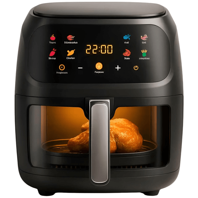 Freidora De Aire 9 Litros Sin Aceite Extra Grande Air Fryer + 100 Papeles antiadherentes Prepare una variedad de platos en esta freidora con poco o nada de aceite. La tecnología de freído de aire hace circular aire caliente de manera uniforme alrededor de los alimentos, lo que resulta en una cocción uniforme con el mismo sabor crujiente. Perfecto para preparar carnes, empanadas, pinchos, chicharron, chorizo, pasteles, tortas, aros de cebolla, papas fritas, bistec, pollo y mucho más. Debido a que la fritura con aire no usa aceite, hay menos olor, menos salpicaduras y menos desorden en comparación con las freidoras tradicionales. El control de temperatura ajustable y el temporizador simplifican la operación. La canasta extraíble contiene hasta 9 Litros de comida y está recubierta con una capa antiadherente para facilitar la limpieza. Características del producto: • El sistema de circulación de aire caliente le brinda una alternativa libre de aceite y más saludable para disfrutar de la comida frita • Freír, hornear, asar a la parrilla y asar deliciosas comidas con un control de temperatura incorporado (60-200) y un temporizador de apagado automático con hasta 30 minutos de tiempo de cocción • La freidora cuenta con una fácil transferencia y la preparación de las comidas con la canasta de cocina desmontable • Mango ergonómico • El precalentamiento rápido y el tiempo de cocción sirven comidas con mucho sabor sin grasas y aceites no saludables • Área de cocción limpia y sin desorden sin olor fuerte y aceitoso • Especificaciones del producto: • Color Surtido • Capacidad: 9 LITROS • Voltaje: 110V * No requiere uso de aceites * Control de Temperatura * Control de Tiempo * Diseño Elegante * Incluye Manual