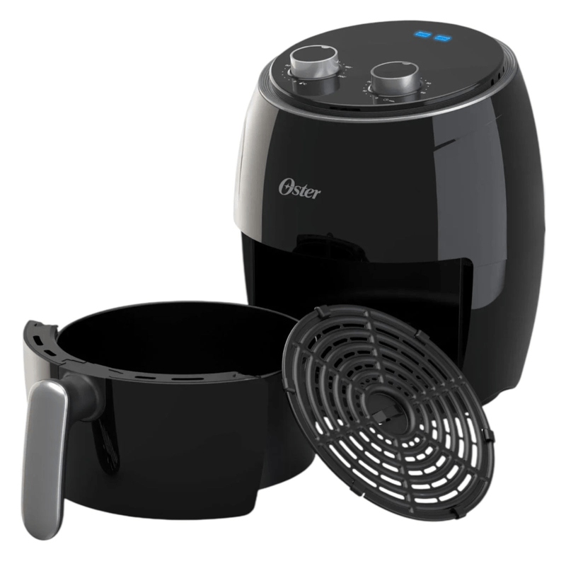 Experimenta una nueva era en la preparación de alimentos con nuestra innovadora freidora de aire manual Oster®. Nuestra freidora tiene capacidad de 3.8L* permite cocinar un pollo de hasta 2Kg. Con controles para ajustar el tiempo y la temperatura, podrás adaptar fácilmente la cocción a tus necesidades y preferencias culinarias. Disfruta de comidas deliciosas y saludables con menos aceite y sin sacrificar el sabor ni la textura crujiente que tanto te gusta. ¡Simplifica tu experiencia en la cocina y descubre un mundo de posibilidades gastronómicas con nuestra freidora de aire manual Oster®! 3.8L* de capacidad Potencia (watts): 1300 W Luces Led Indicadoras Recubrimiento Antiadherente Limpieza fácil, bandeja extraíble Mango ergonómico y frío al tacto Temporizador de 60 Minutos Control de Temperatura 80°C a 200°