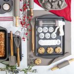 Antes de hornear deliciosas galletas o pasteles dulces, cubra la lata para hornear con este forro antiadherente en silicona flexible para darle una superficie antiadherente que no necesita engrasarse y alargue la vida útil de la misma. Reduzca el uso de papel parafinado con esta alfombra de hornear antiadherente y reutilizable. Proporciona una excelente superficie para extender la masa de hojaldre. Se enrolla para un almacenamiento compacto.