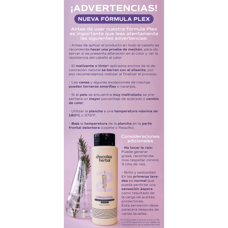 ¡Importante: El matizante o tintura que tengas aplicado se pierde durante la aplicación del producto y proceso de alisado y en algunos casos las mechas pueden cambiar de color, especialmente si tienes algún porcentaje de canas!