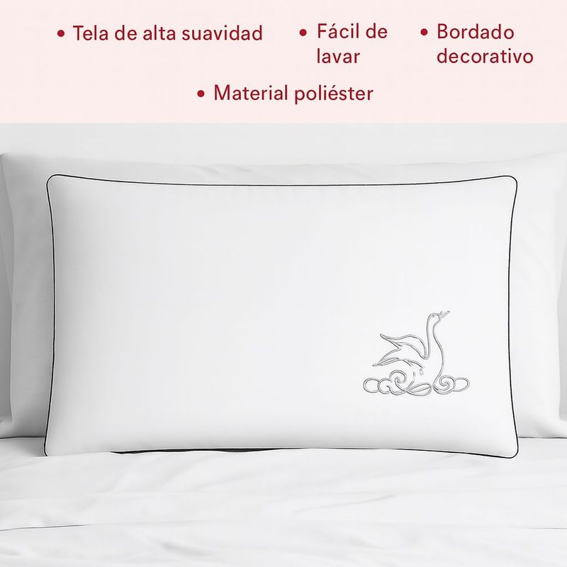 ELECTRODOMESTICOSHogarRopa HogarAlmohadaAlmohada Hotelera Blanca Con Bordado Negro Decoracion Cisne
