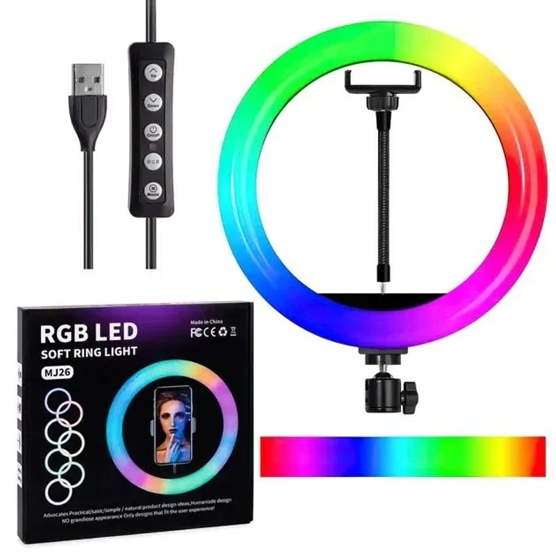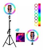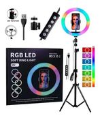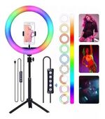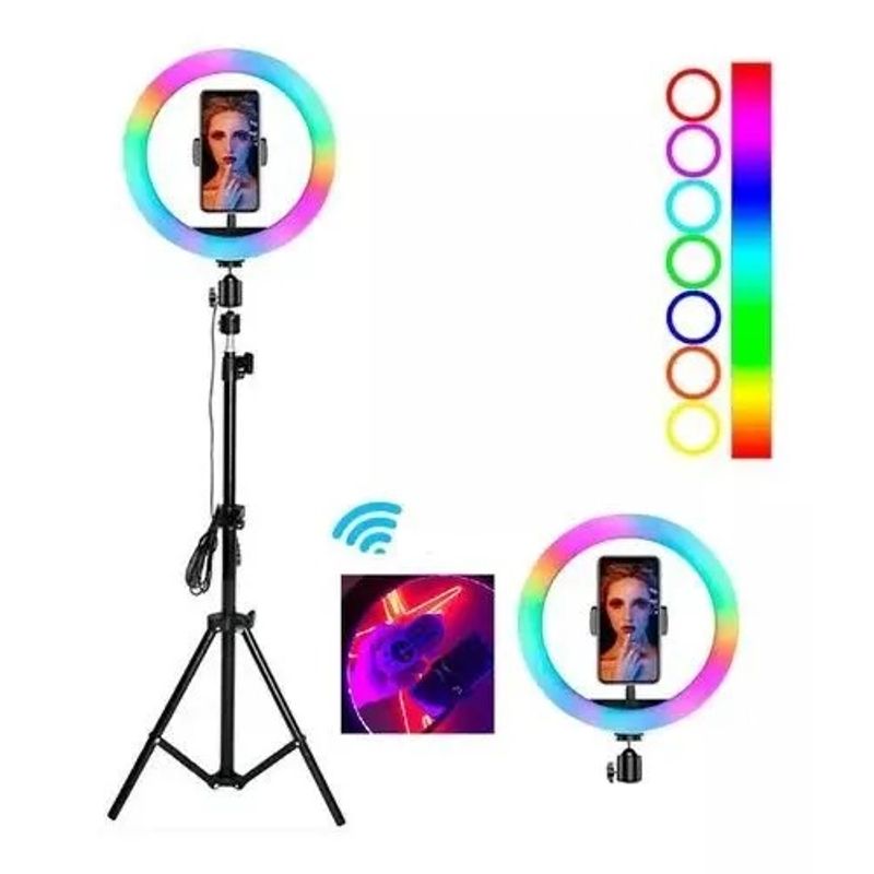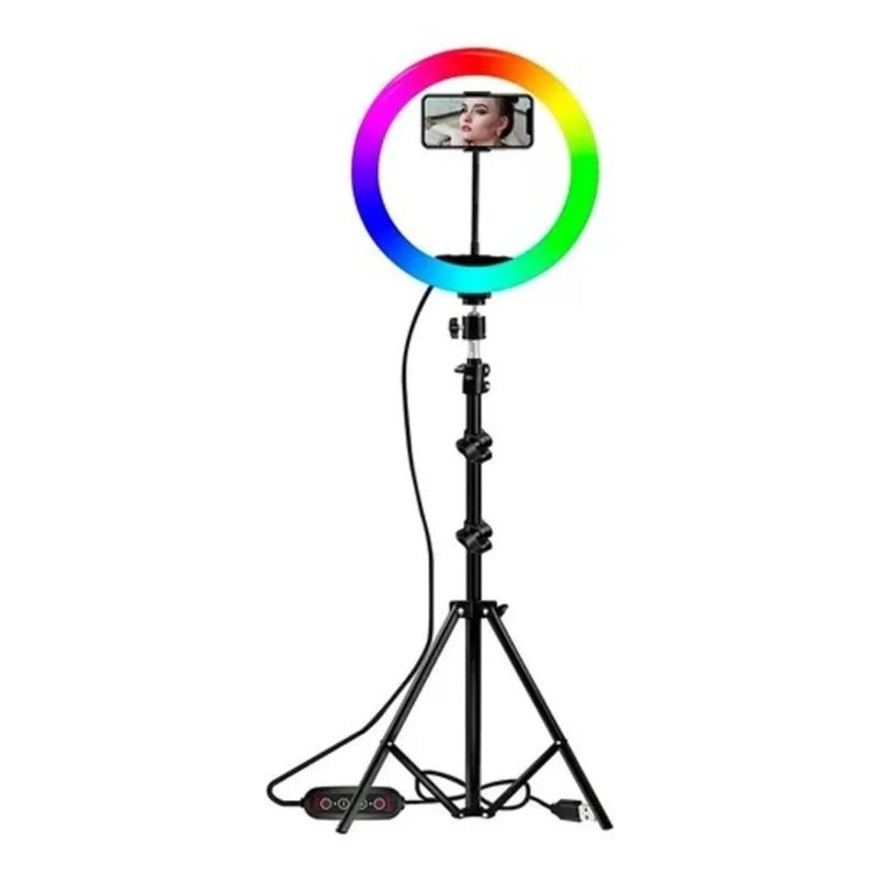 Graba de forma profesional, iluminada y llena de colores con este aro de luz led de colores RGB 26 cm con trípode, crea videos interactivos y divertidos que puedes subir a tu red social favorita, tales como Facebook, Tik Tok, Instagram, Snapchat, etc.