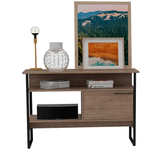 Espacio para ubicar libros y objetos decorativos, Una puerta, patas en acero. Color Miel. Posee unas medidas en CM de: Alto: 80 Ancho:120 Fondo: 35 y un peso en KG de: 25 NO INCLUYE ARMADO, Hecho de madera aglomerada, limpiar en seco, no productos abrasivos, ni humedad alta , La foto de este producto ha sido ambientada, por lo cual no incluye ningún adorno, ni accesorios, ni piezas adicionales ni ningún otro elemento que lo acompañan. El color presentado en la fotografía es una aproximación al color real.