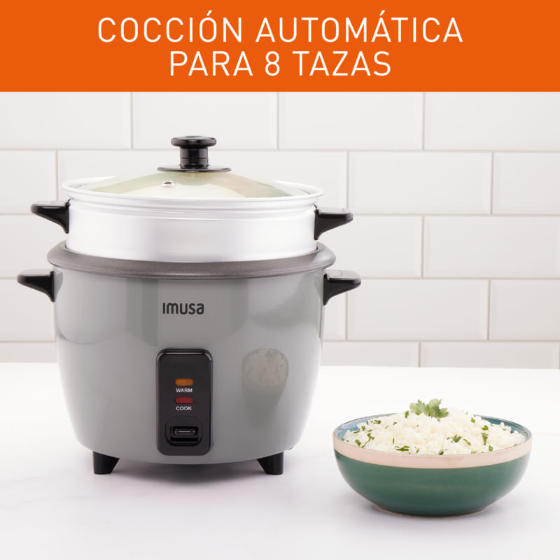 La arrocera IMUSA de 8 tazas (1.6 litros) es un electrodoméstico práctico y eficiente diseñado para preparar arroz perfecto de manera automática. Con su capacidad de 3.2 libras, es ideal para familias pequeñas o medianas. Su diseño compacto en color gris se adapta a cualquier cocina, mientras que su sistema de cocción automático garantiza arroz esponjoso sin necesidad de supervisión constante.