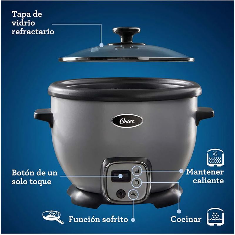 Con su diseño moderno y funcional, la Arrocera Multiusos Oster es la adición ideal para cualquier cocina. Prepara tus comidas favoritas de manera fácil y saludable. ¡No te quedes sin la tuya!