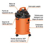 Aspiradora De 4 Galones Para Solidos Y Líquidos Trabajo Pesado Marca: TRUPER Modelo: 101508 CARACTERÍSTICAS » Ruedas reforzadas que giran 360° para fácil transportación » Manguera flexible » Largo de cable: 3.6 m (12 ft) » Potencia máxima 3 HP (2,000 W) » Potencia nominal 0.94 HP (700 W) » Capacidad 15 L (4 gal) » Largo de manguera 1.9 m (6.2 ft) » Largo cable 3.6 m (12 ft) » Nivel de ruido 85 Db » Capacidad de succión de líquido 10 L » Tensión / Frecuencia 127 V / 60 Hz » Ciclo de trabajo 30 minutos de trabajo por 15 minutos de descanso. Máximo diario 3 horas » Empaque individual Caja » Inner 1 INCLUYE » Manguera de diámetro 1 1/4"" (32 mm), 1.9 m (6.2 ft) con seguro de ajuste » Boquilla tipo cepillo 2 en 1 » Boquilla esquinero » 3 Tubos de extensión diámetro 1 1/4"" (32 mm) » Filtro de tela » Filtro de espuma para líquidos