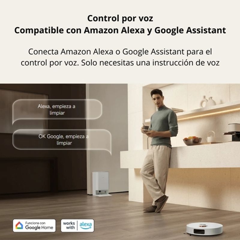 La navegación láser LDS escanea el entorno en 360° y planifica rutas eficientes. El sistema de evitación de obstáculos reduce colisiones en espacios complejos. Puede controlarse de forma remota desde la app y mediante comandos de voz con Amazon Alexa y Google Assistant.