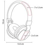 Descripción: "Audífonos bluetooth plegables con diadema acojinada. Función manos libres. Radio FM. Reproducción de música 4 hrs aproximadamente. Controles integrados de llamada, volumen y reproducción de audio. Incluye cable cargador USB, cable de audio de 3.5 mm y estuche con cierre. "
