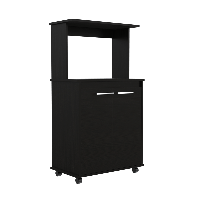 Auxiliar para microondas con dos puertas abatibles, compartimiento inferior para alimentos, utensilios de codina y electrodomesticos, rodachinas plasticas con medidas de: ANCHO 113,5 ALTO 63,1 PROFUNDO 36,1