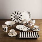 Es el accesorio de servicio clave para presentar alimentos, o bien, para utilizarse como base decorativa para velas o joyería, demostrando su valía en la funcionalidad atemporal. Es perfecta para exhibir aperitivos, sushi o postres en secuencia, creando una puesta en escena de alta cocina. El diseño Blanco y Negro en porcelana aporta un toque llamativo y único.