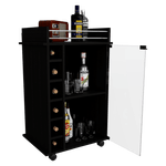 Bar, con 1 puerta batiente de vidrio, rodachines, espacio para porta botellas y copas.