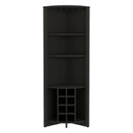 Bar Esquinero, con amplio espacio de almacenamiento y porta copas. Elaborado en Madera aglomerada MDP, recubierta con láminas melamínicas de excelente calidad, en color Wengue. Sus medidas son: Alto: 180 cm Ancho: 49 cm Fondo: 49 cm El tiempo de entrega de este producto es de 3 a 8 días hábiles. Su garantía es de 3 años en madera y 1 en herrajes. Pregunta ya por nuestro servicio de armado y envío gratis. Importante: Este producto no incluye elementos decorativos ni ambientación.