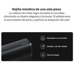 La cubierta de malla negra envuelve la soundbar, ofreciendo un diseño elegante y funcional. El sellado evita la acumulación de polvo y optimiza la disipación del calor.