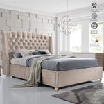 El espaldar está construido con paneles cocidos a mano individualmente, también está generosamente acolchado con espumas de alta densidad, lo que permite versatilidad en la ubicación de la habitación.