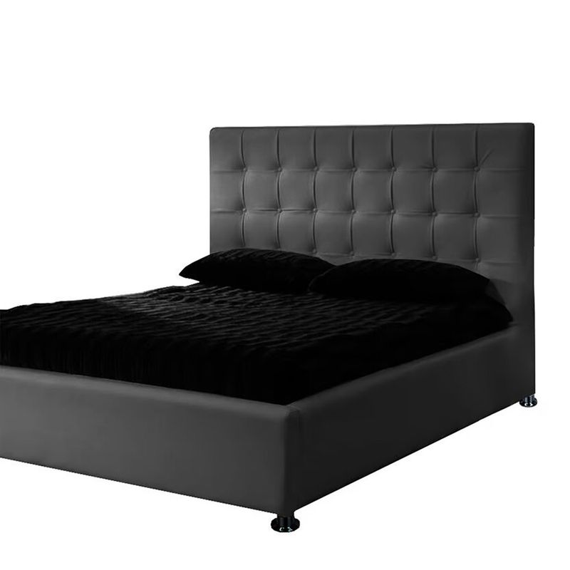 Base Cama Con Espaldar Sencillo Ilusion Gris Plomo