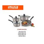 Renueva tu cocina con la Batería de Cocina Imusa Smart 7 Piezas, ideal para preparar tus recetas favoritas con facilidad, ahorro de tiempo y resultados deliciosos. Con diseño moderno, tapas de vidrio templado y recubrimiento antiadherente de alta calidad, esta batería se convertirá en tu aliada perfecta.
