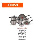Lleva tu cocina al siguiente nivel con la Batería de Cocina Imusa de 11 piezas, diseñada para ofrecerte practicidad, resistencia y un recubrimiento antiadherente de alta calidad que evita que los alimentos se peguen. Perfecta para cocinar más saludable, ahorrar tiempo en limpieza y tener todo lo que necesitas en tu hogar.