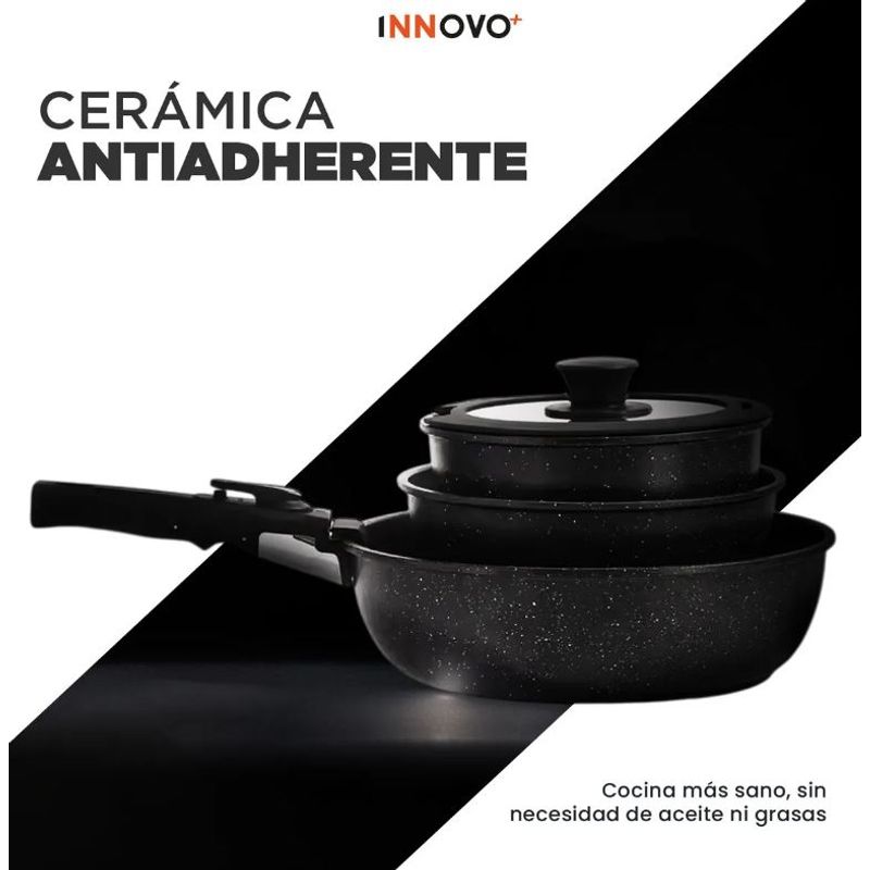 Antiadherente cerámico tipo granito: libre de PFOA y PTFE, resistente al desgaste.