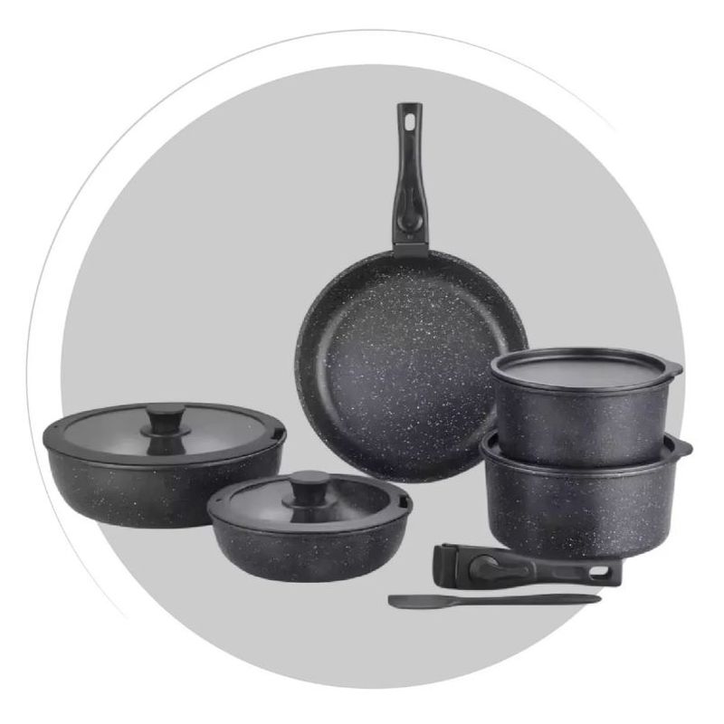 Gracias a su mango desmontable y tapas herméticas, podrás usar las ollas en estufa, horno, refrigerador o lavavajillas, optimizando el espacio y simplificando tu rutina diaria.