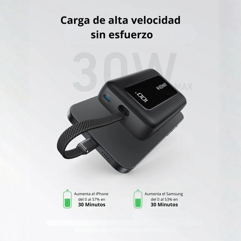 • Power Bank Anker Zolo 10000 mAh 30 W con cable USBC incorporado