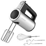 Su motor de 800 W proporciona un alto rendimiento para obtener mezclas suaves y homogéneas, incluso con ingredientes más densos. Cuenta con 5 niveles de velocidad ajustables y función Turbo, ideales para adaptarse a diferentes tipos de preparaciones, desde claras de huevo y cremas hasta masas ligeras y salsas.
