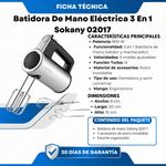 Batidora de Mano Eléctrica 3 en 1 Sokany 02017 – 800W