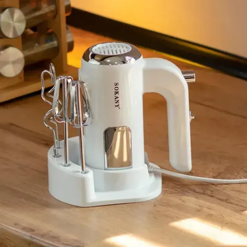 La Batidora de Mano Sokany SK-02025 es el aliado perfecto en tu cocina, diseñada para combinar potencia, versatilidad y comodidad en cada preparación. Su motor de 500W (con función turbo) permite batir, mezclar y amasar con rapidez y eficiencia, adaptándose a diferentes recetas gracias a sus 5 velocidades ajustables.
