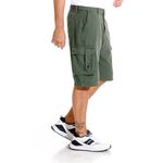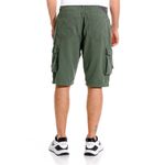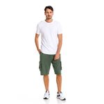 Bermuda en drill con bolsillos cargo en delantero.Efecto lavado café, verde y azul oscuro. Cierre frontal con cremallera y botón metálico.El modelo mide entre 1.80 y 1.85, la prenda superior es talla m y la prenda inferior es talla 32.