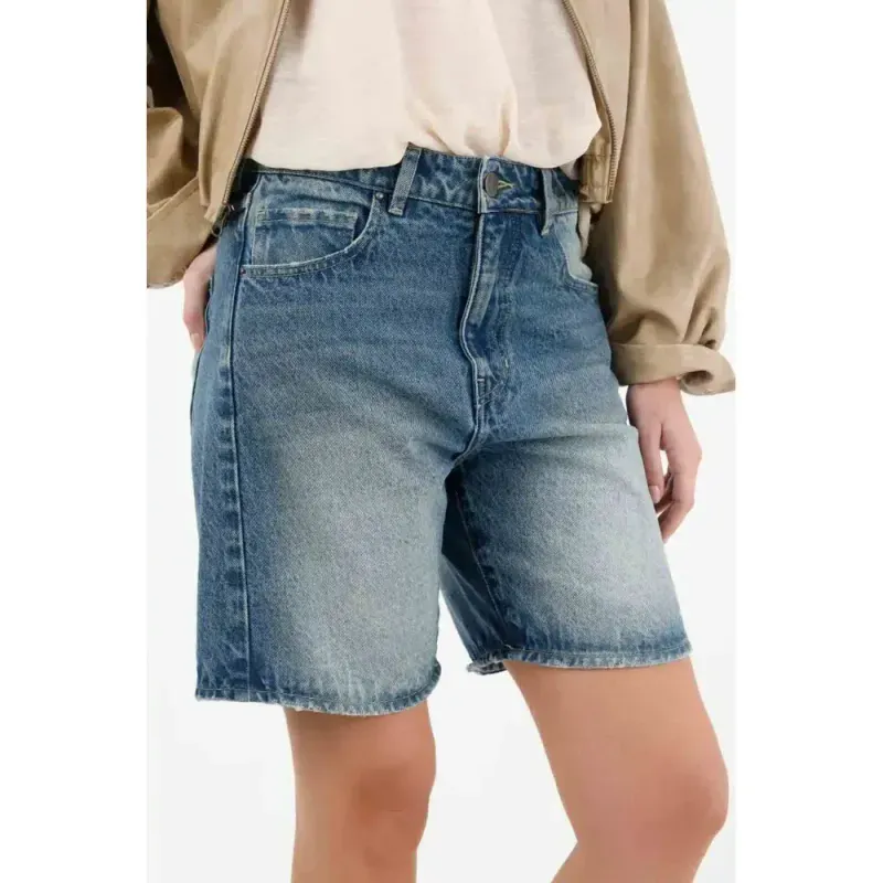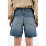 Confeccionada en denim 100% algodón, esta bermuda presenta cinco bolsillos funcionales y un fit suelto que realza el estilo casual de temporada. Su tono medio la hace versátil y fácil de integrar en cualquier clóset.