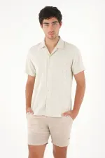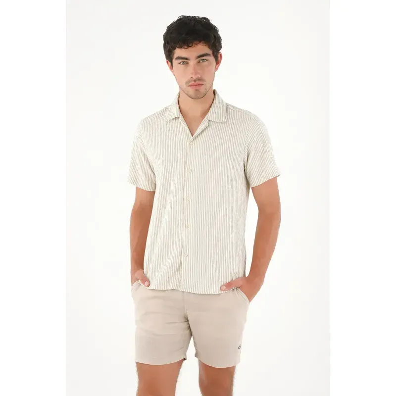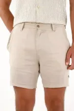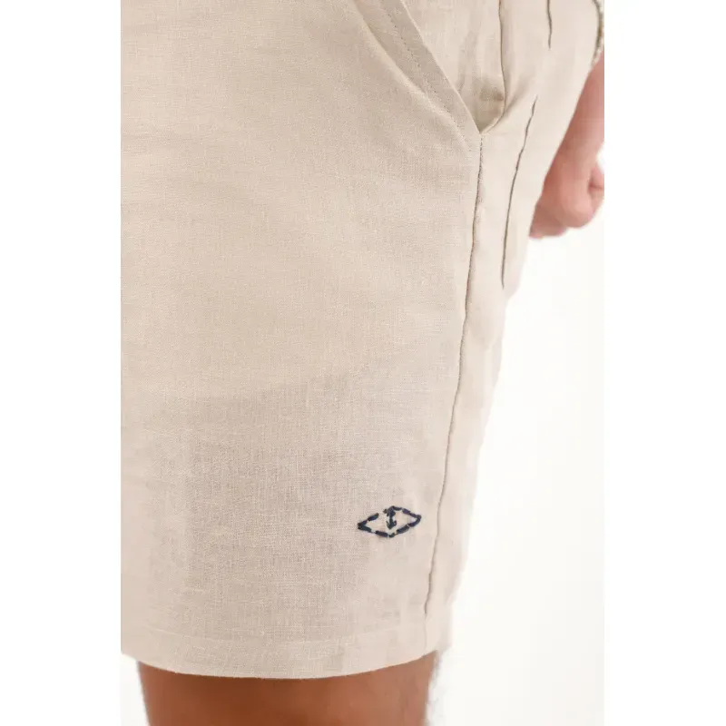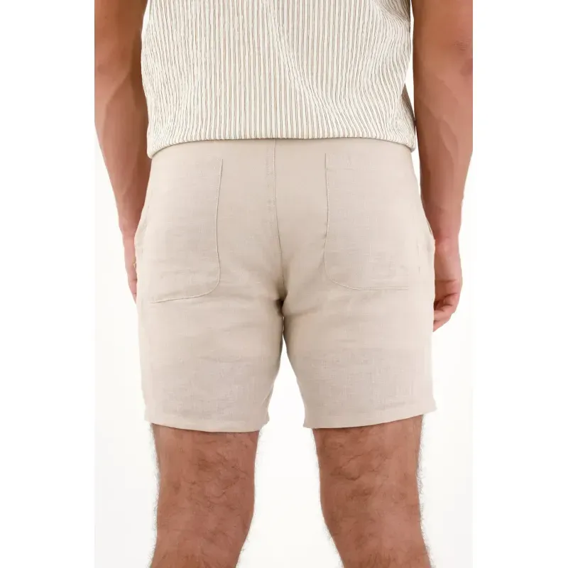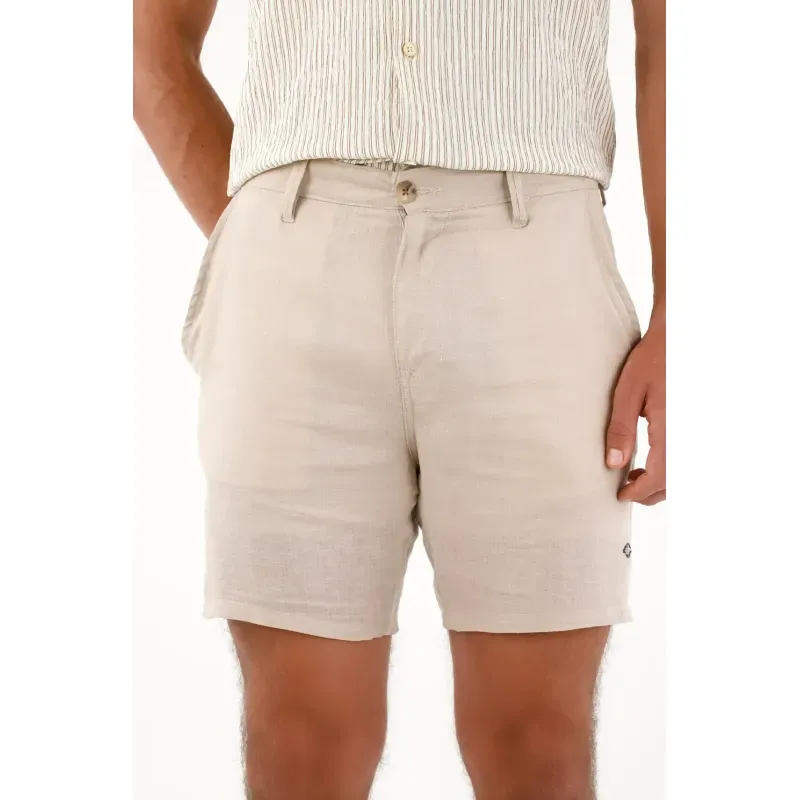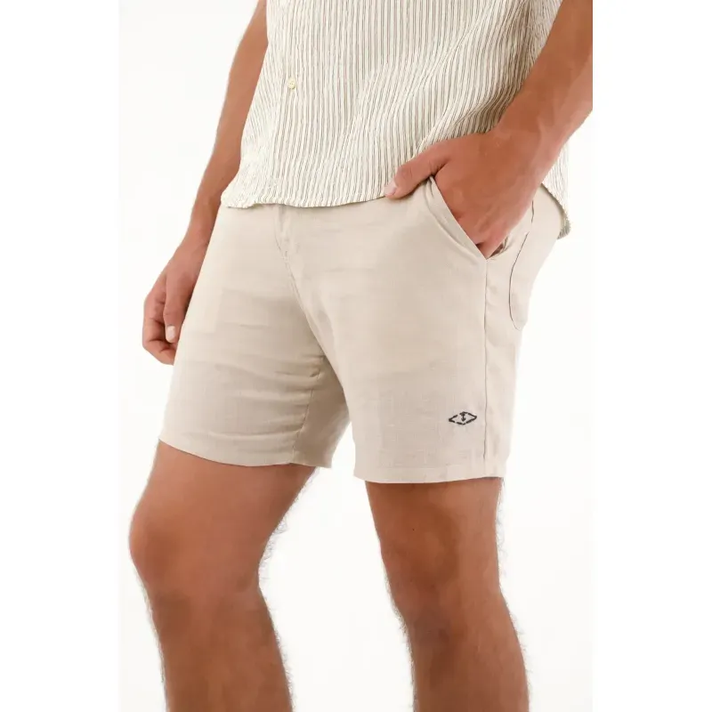 Esta bermuda para hombre está confeccionada en lino y con su diseño tipo chino ofrece un fit cómodo y versátil, ideal para acompañarte desde un día casual hasta planes más arreglados sin perder el estilo. Cuenta con bolsillos laterales funcionales, bolsillos tipo parche en la parte posterior y un bordado de ancla en contraste en el ruedo, un detalle distintivo que añade carácter sin caer en excesos. Su estructura limpia y su tono café la convierten en una prenda fácil de combinar con camisetas, camisas ligeras o camisas de lino para un look completamente equilibrado.