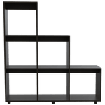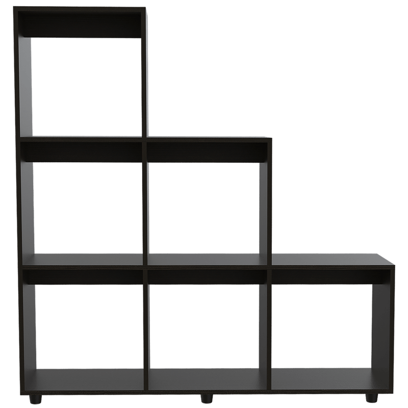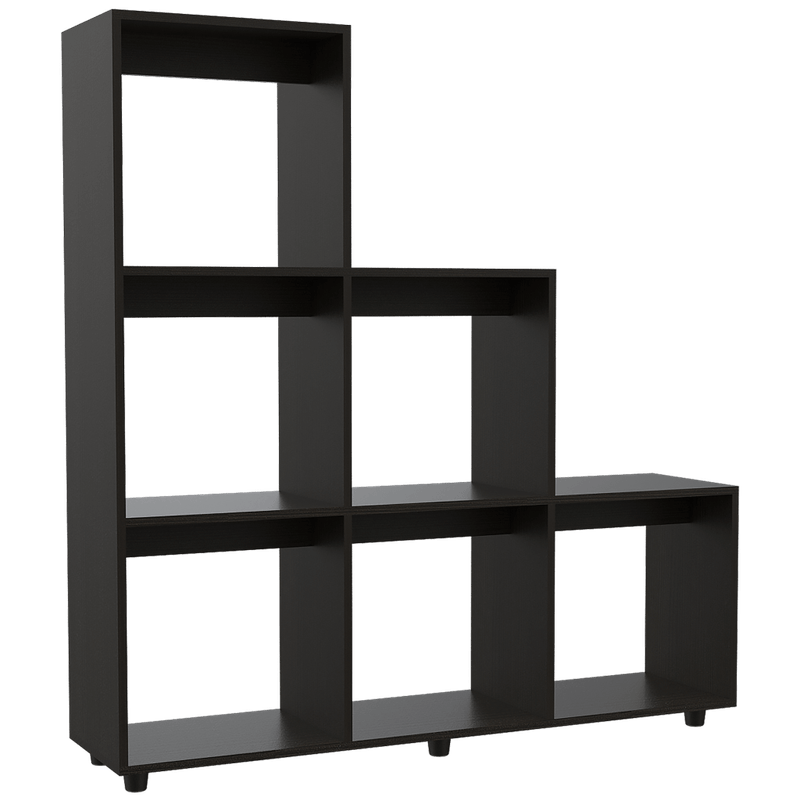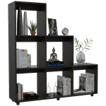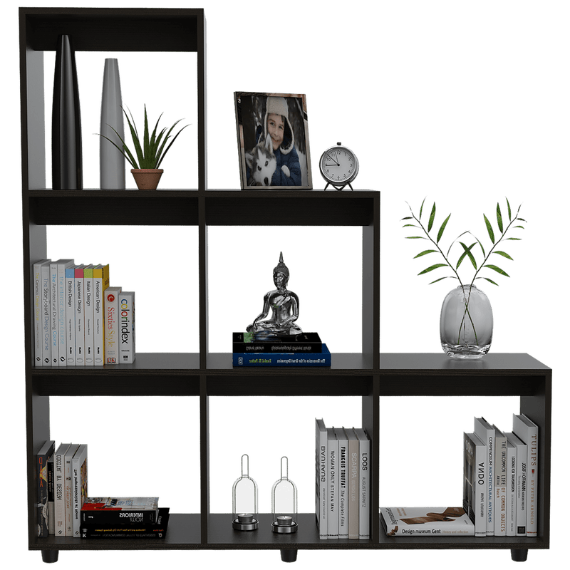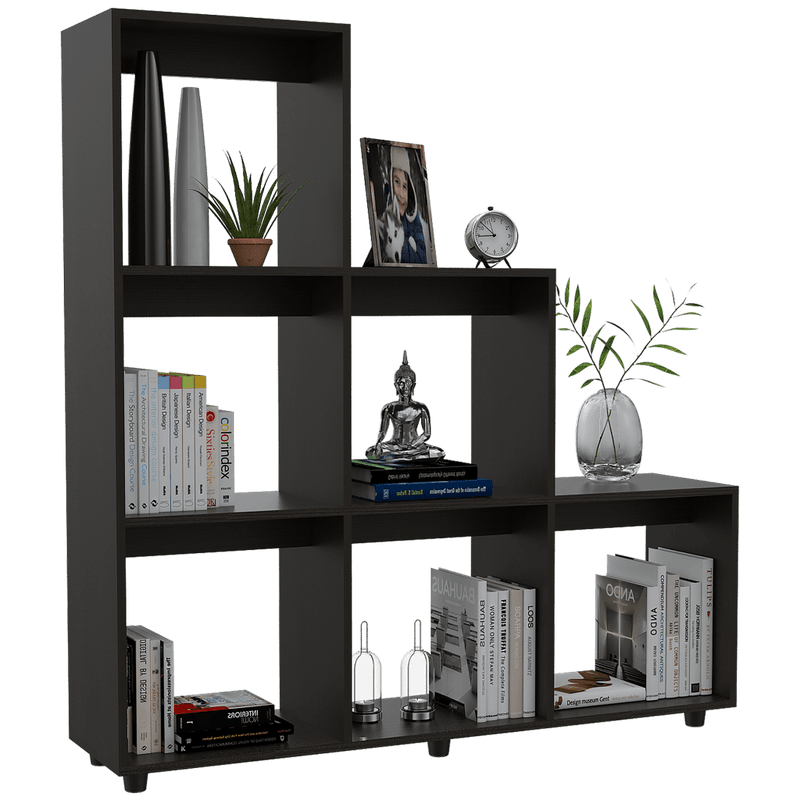 Biblioteca, con variedad de espacios para libros y artículos decorativos.