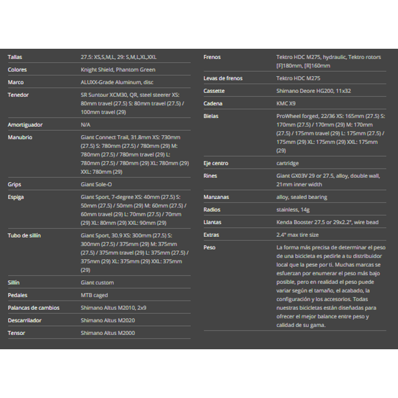 Diseñada con cuadro de aluminio ligero ALUXX y grupo de 2x9 velocidades Shimano Altus. Una bici para iniciarse en el mundo del Cross Country con ruedas de 29". Equipada con suspensión delantera de 100mm de recorrido para aquel usuario que busca una bicicleta de buen precio pero con un buen montaje.