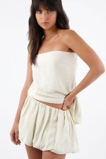 Esta blusa strapless para mujer de TNS juega con una textura arrugada visible en un tejido de viscosa con poliamida. El escote recto despeja el cuello y enmarca los hombros para un efecto limpio; el bajo asimétrico dibuja una diagonal que alarga la silueta y suma movimiento; el tono marfil aporta luz y combina con todo. Su fit relajado acompaña el cuerpo sin marcar, perfecto para un ritmo casual y creativo.