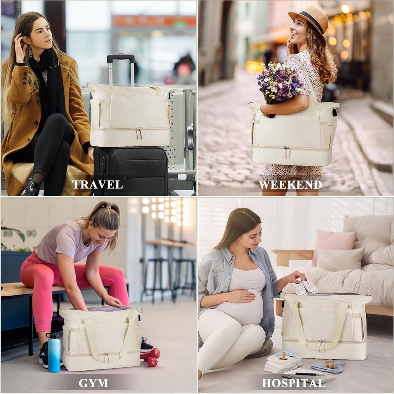 Bolsa de lona separada en seco y húmedo: esta bolsa de lona para mujer ofrece un amplio compartimento principal para almacenar tu ropa y artículos. Un bolsillo impermeable con cremallera forrado de PVC para ropa húmeda o toallas y trajes de baño. Además, esta bolsa de viaje también proporciona una bolsa de maquillaje extra pequeña para un fácil almacenamiento. 2 bolsas de zapatos extra gratis. Esta bolsa de gimnasio rosa tiene un compartimento separado en la parte inferior para tus zapatos y ropa sucia. una opción perfecta para llevar todos tus artículos esenciales de gimnasio y viajes. Úsalo como bolsa de viaje de avión, bolsa de equipaje, bolsa de deporte de gimnasio, bolsa de fin de semana, bolsa de mano, bolsa de playa. Nuestra bolsa de gimnasio para mujer es adecuada tanto para deportes de interior como al aire libre, como viajes, deportes, viajes de fin de semana, yoga, gimnasio, escuela, playa, negocios u otro uso diario.