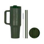 100% acero inoxidable. Apto para portavasos. Sin contenido bpa. No es antiderrame. Mantiene las bebidas calientes o frías. Aislamiento de doble pared. Tapa multifuncional. Fácil de llevar. Capacidad de 1200ml (40oz).