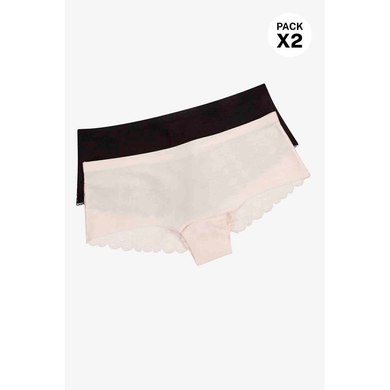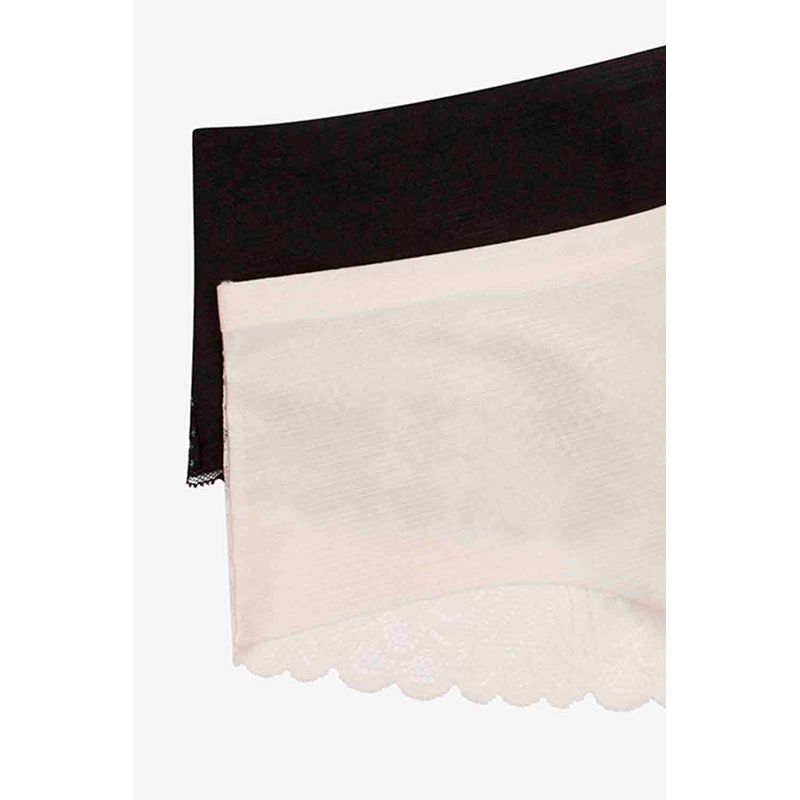 Panty tipo bóxer en paquete x2 de la línea Seduction, que destaca por su cobertura amplia y diseño sofisticado. Con microfibra satinada al frente y encaje posterior, ofrece una combinación ideal de elegancia, sensualidad y confort. Su silueta envolvente brinda seguridad sin dejar de lado el estilo.