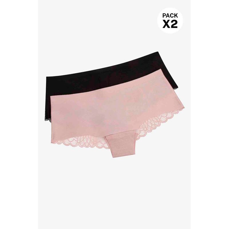 Panty tipo bóxer en paquete x2 de la línea Seduction, que destaca por su cobertura amplia y diseño sofisticado. Con microfibra satinada al frente y encaje posterior, ofrece una combinación ideal de elegancia, sensualidad y confort. Su silueta envolvente brinda seguridad sin dejar de lado el estilo.