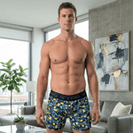 Bóxer Para Hombre King En Seda Fría Figuras Amarillo Azul