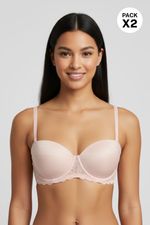 Brasier strapless en paquete x2 con copas en microfibra satinada, ideal para quienes buscan comodidad y elegancia en prendas sin tirantes. Parte de la línea Seduction, este brasier destaca por su diseño adaptable y espalda en encaje, lo que permite usarlo bajo prendas con escote o sin mangas sin sacrificar soporte.