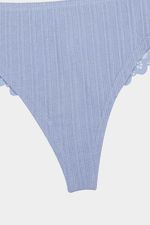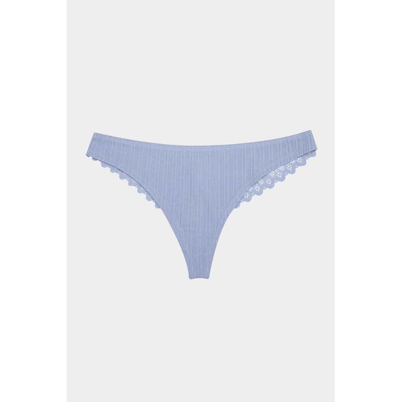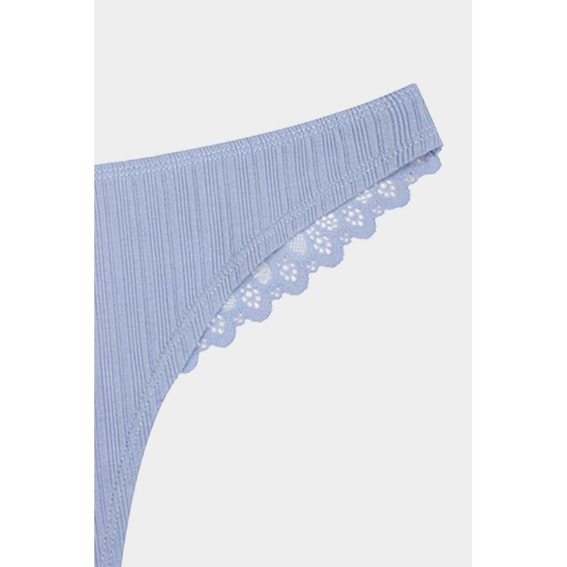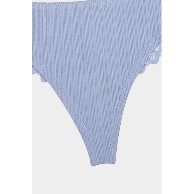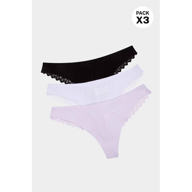 Panty en paqueteria x3 con silueta tipo brasilera que brinda cobertura leve en las piernas y los gluteos, elaborado en algodón, un material que brinda frescura y suavidad, con textura acanalada, la parte posterior se encuentra elaborada en encaje, un material que brinda un alto nivel de frescura y suavidad. Con refuerzo en algodón que brinda higiene y frescura en la zona intima.