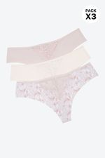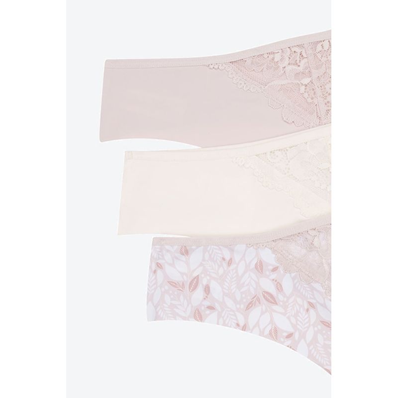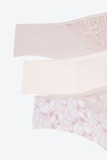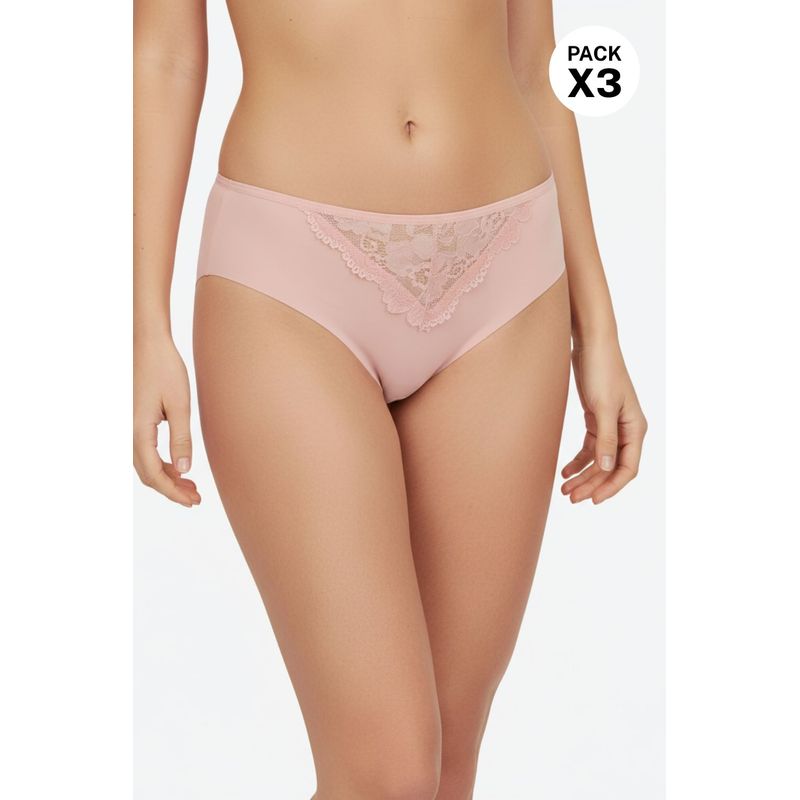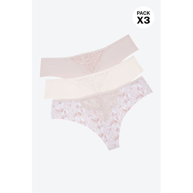 ¡Elegancia y comodidad se unen! Este pack de dos panties tipo brasilera está confeccionado en microfibra suave con acabados de corte láser para evitar marcas bajo la ropa. Un delicado detalle de encaje en el frente añade un toque femenino y sofisticado, ideal para tu día a día.